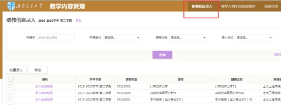 (1)录入教材:最多录入五本教材,录入一次,保存一次后才能再录入下一条教材信息,所有教材信息录入完毕后,须点击“提交”完成教材录入。
